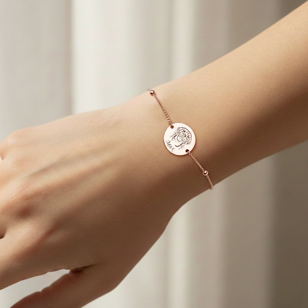 Laser-engraved with precision, this personalized bracelet features your pet’s portrait on a 925 sterling silver disc.
